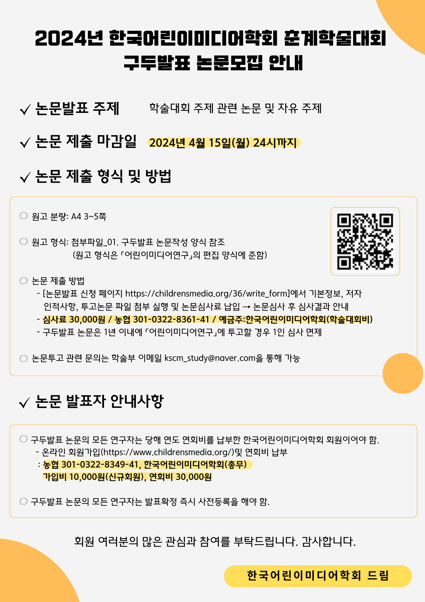 2024년 6월 1일(토)에 개최되는 춘계학술대회 구두발표 논문모집을 안내해 드립니다.