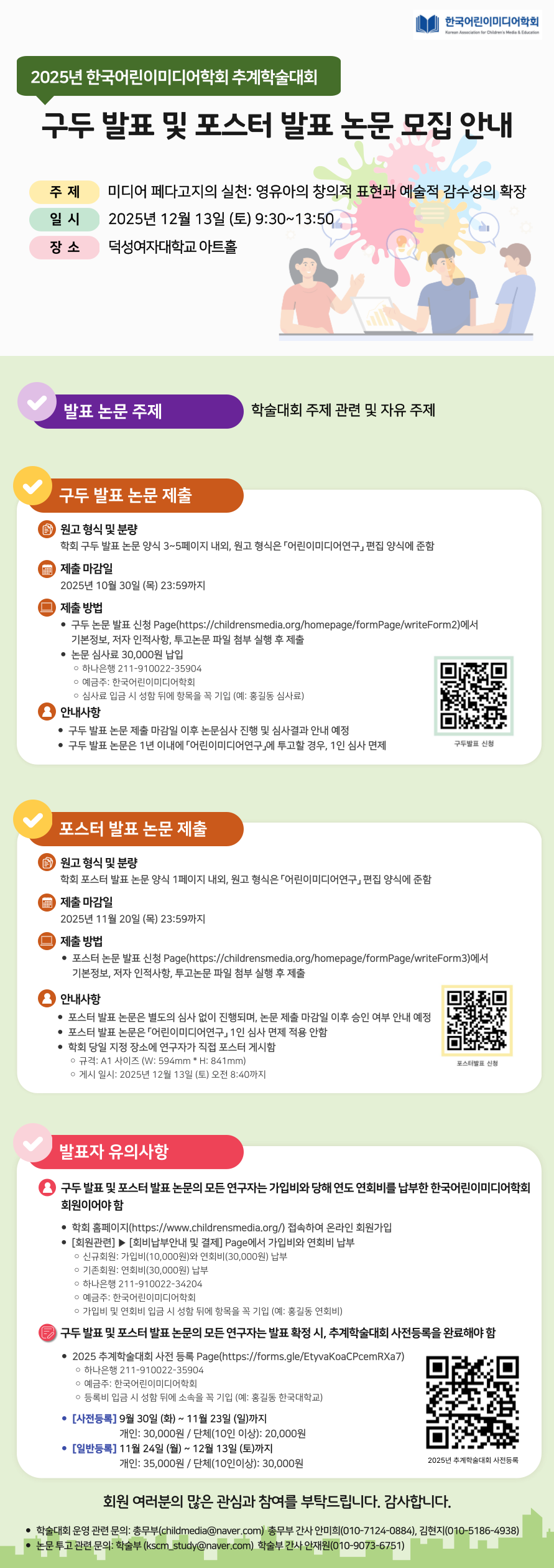 포스터 발표(9/30 ~ 11/20): https://childrensmedia.org/homepage/formPage/writeForm3