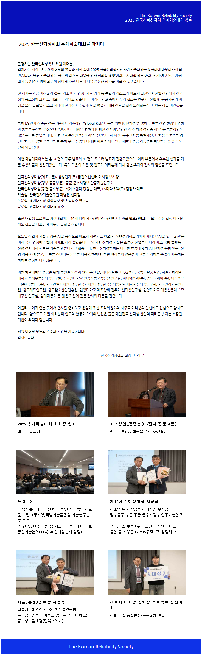 2025년 추계학술대회 성료에 따른 감사 인사
