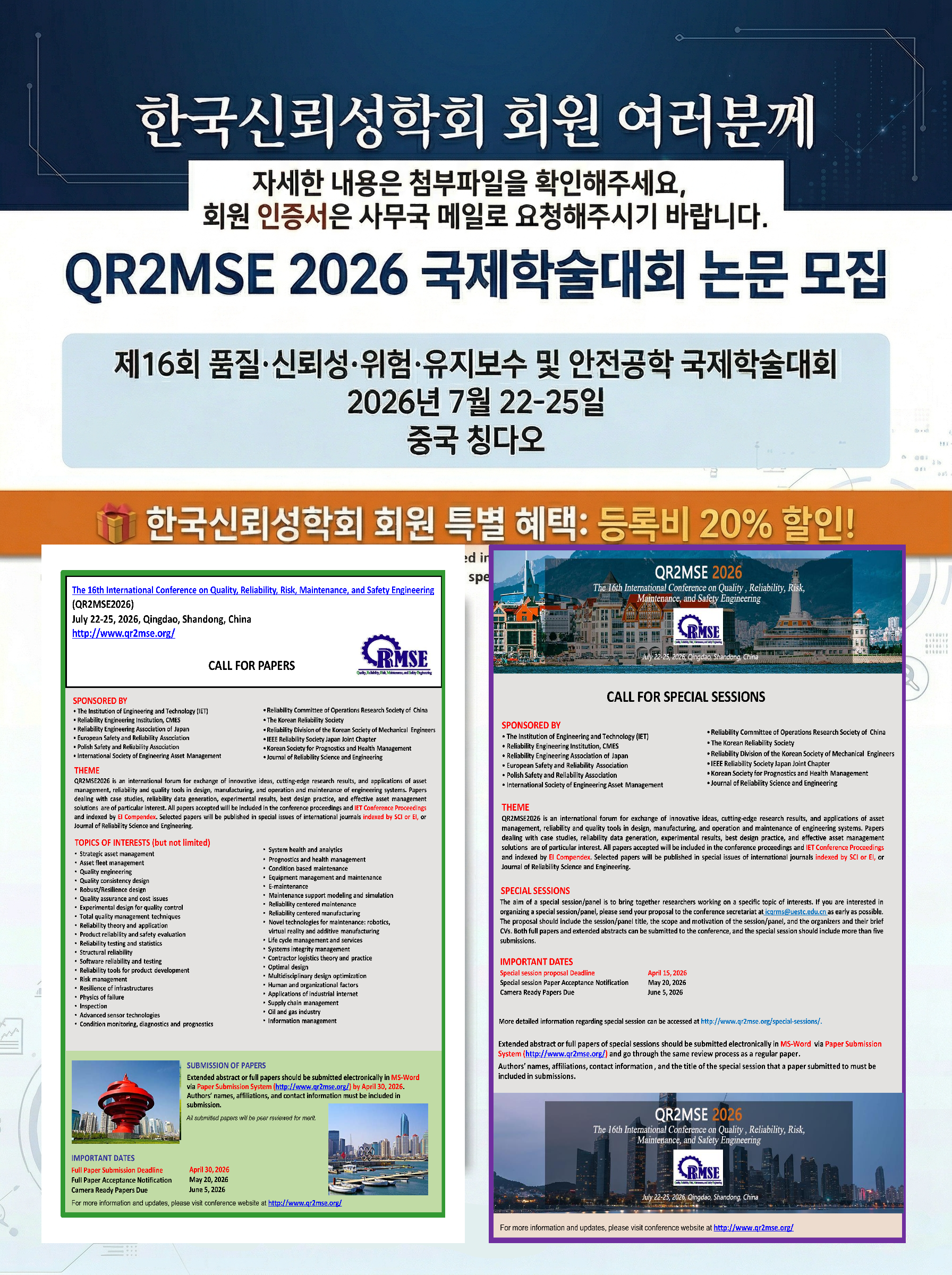 QR2MSE 국제학술대회 논문 접수 안내(학회 회원 등록비 20% 할인)