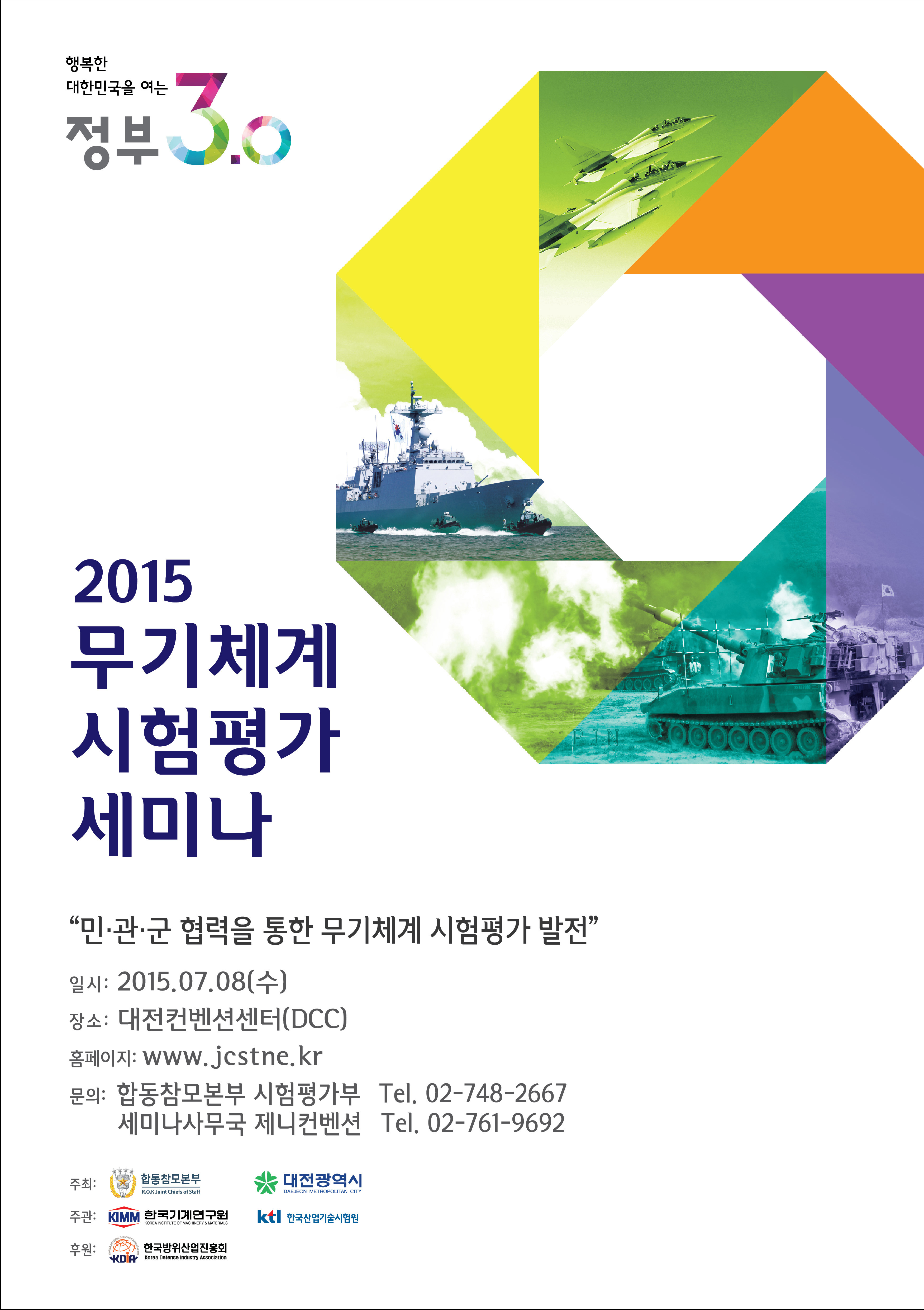 2015년 7월 8일 수요일, 대한민국 합동참모본부 주최로 대전컨벤션센터(DCC)에서 개최되는 [2015 무기체계 시험평가 세미나] 사무국에서 인사드립니다.