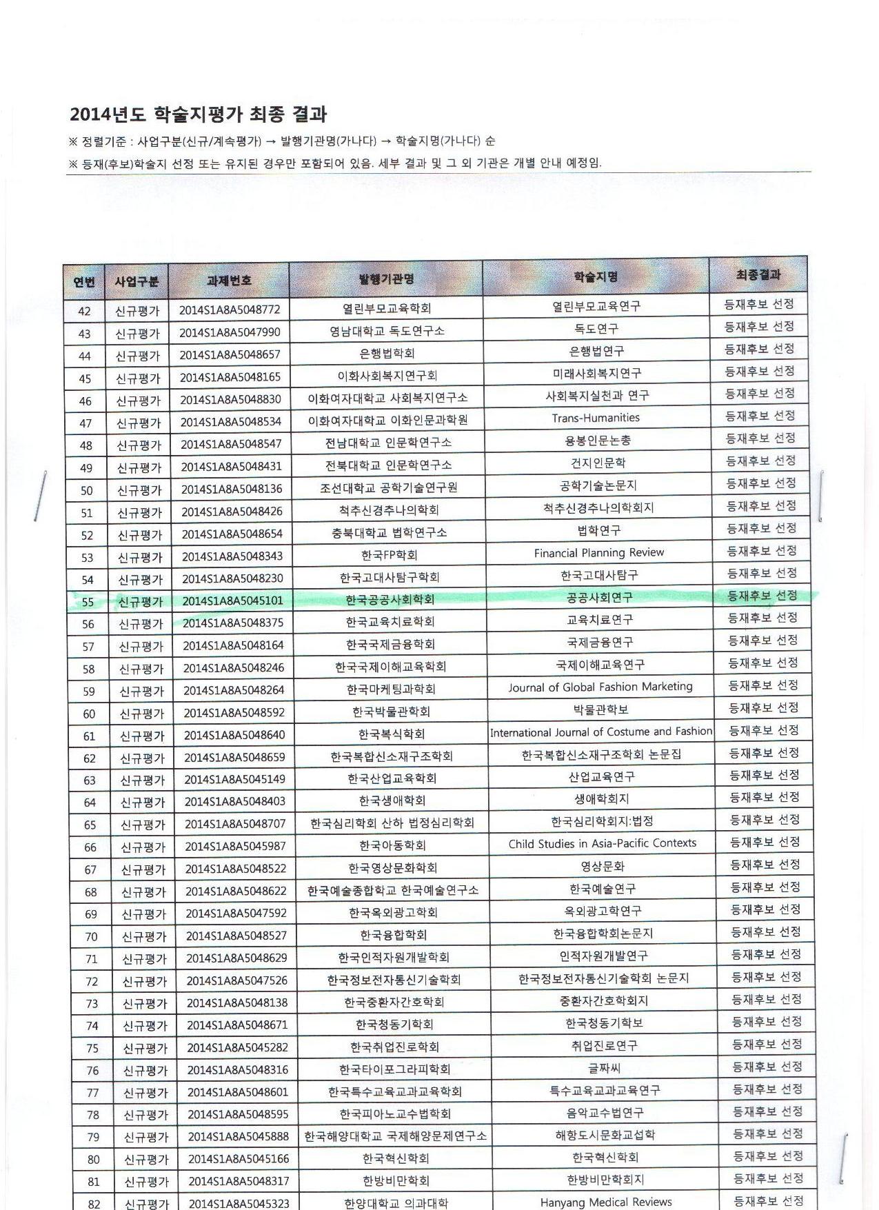 한국공공사회학회의 학술지 <공공사회연구>가 창간 3년만에 한국연구재단의 2014년도 학술지평가 결과 '등재후보지'로 선정되었습니다.