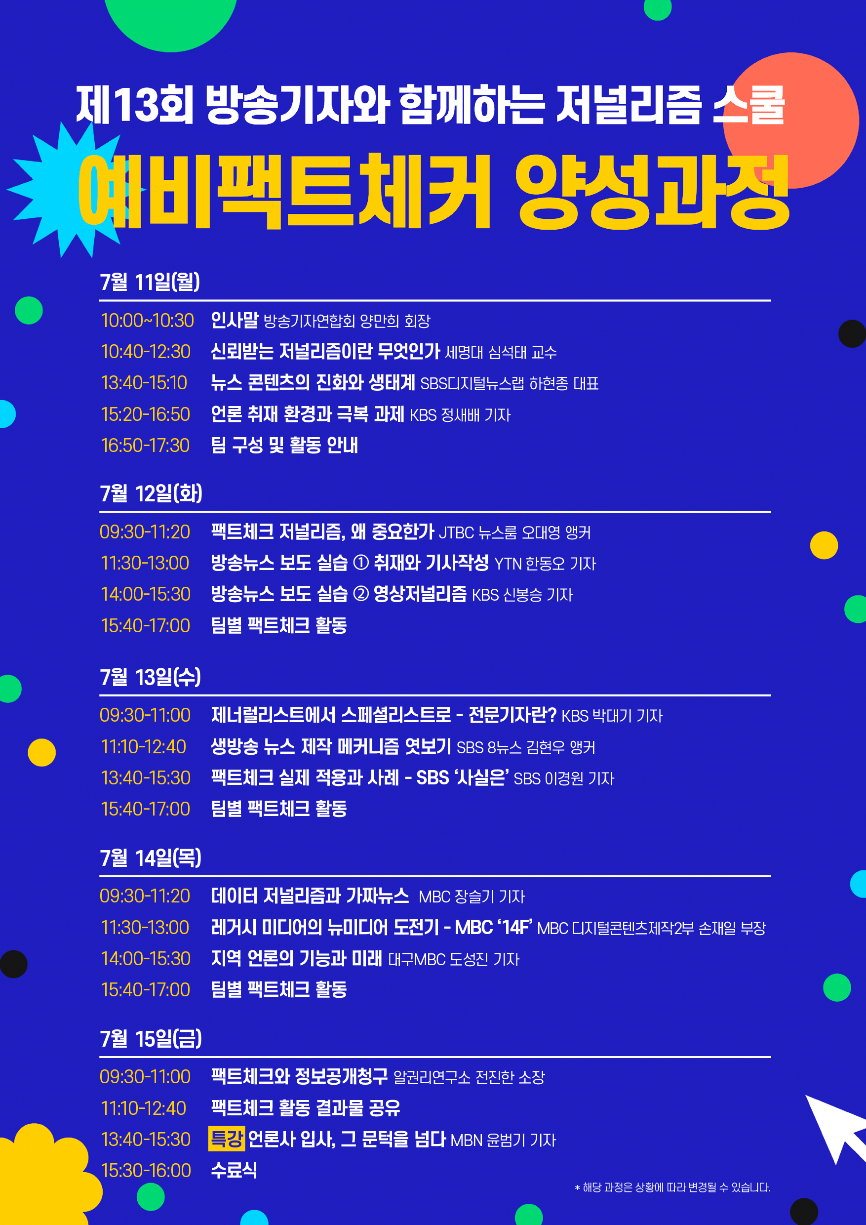 첨부 2. 제13회 방송기자와 함께하는 저널리즘 스쿨 강의 계획안. 끝.