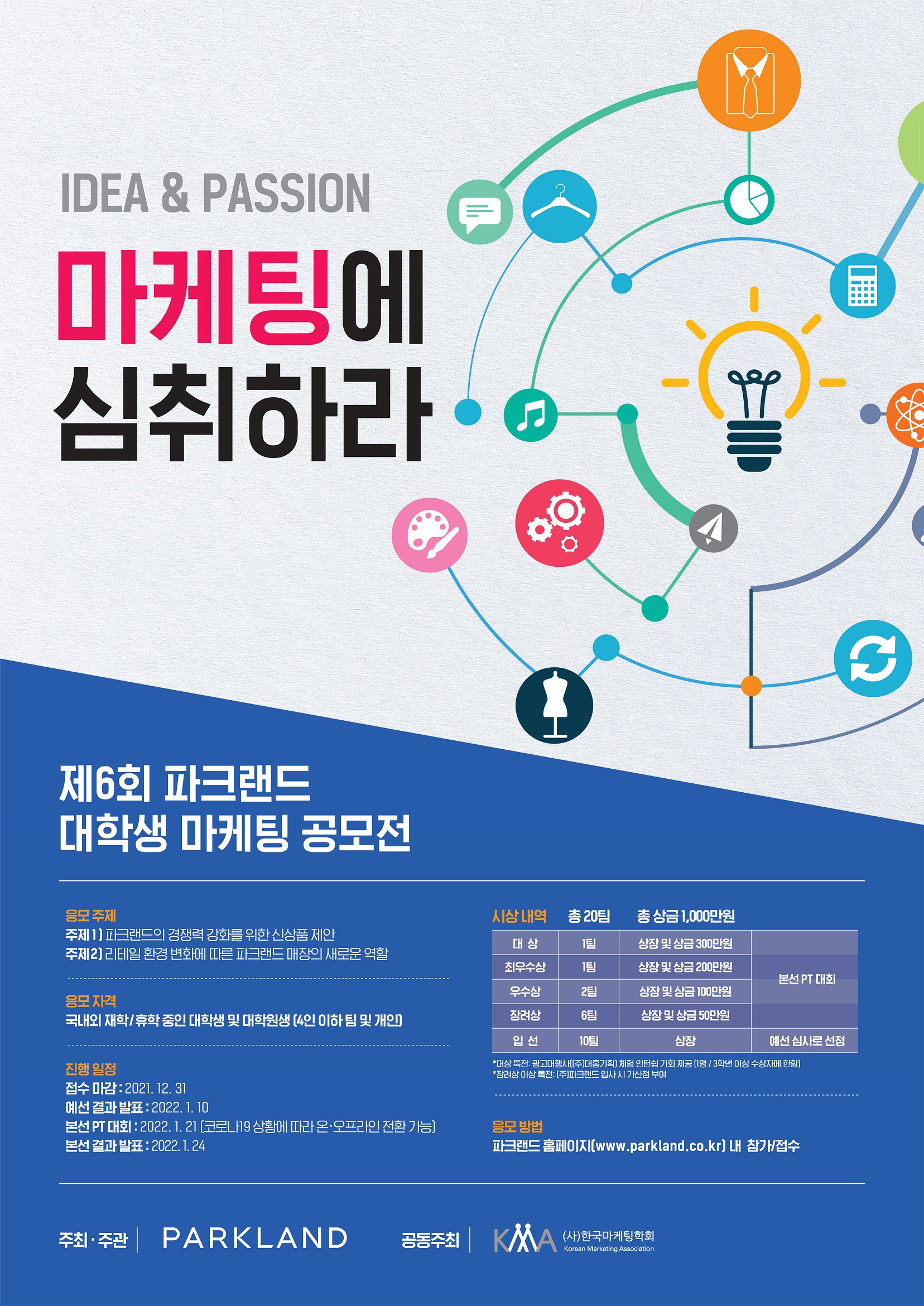 (사)한국마케팅학회와 (주)파크랜드의 공동주최로 전국 대학(원)생을 대상으로 '제6회 파크랜드 대학생 마케팅 공모전'을 개최합니다.