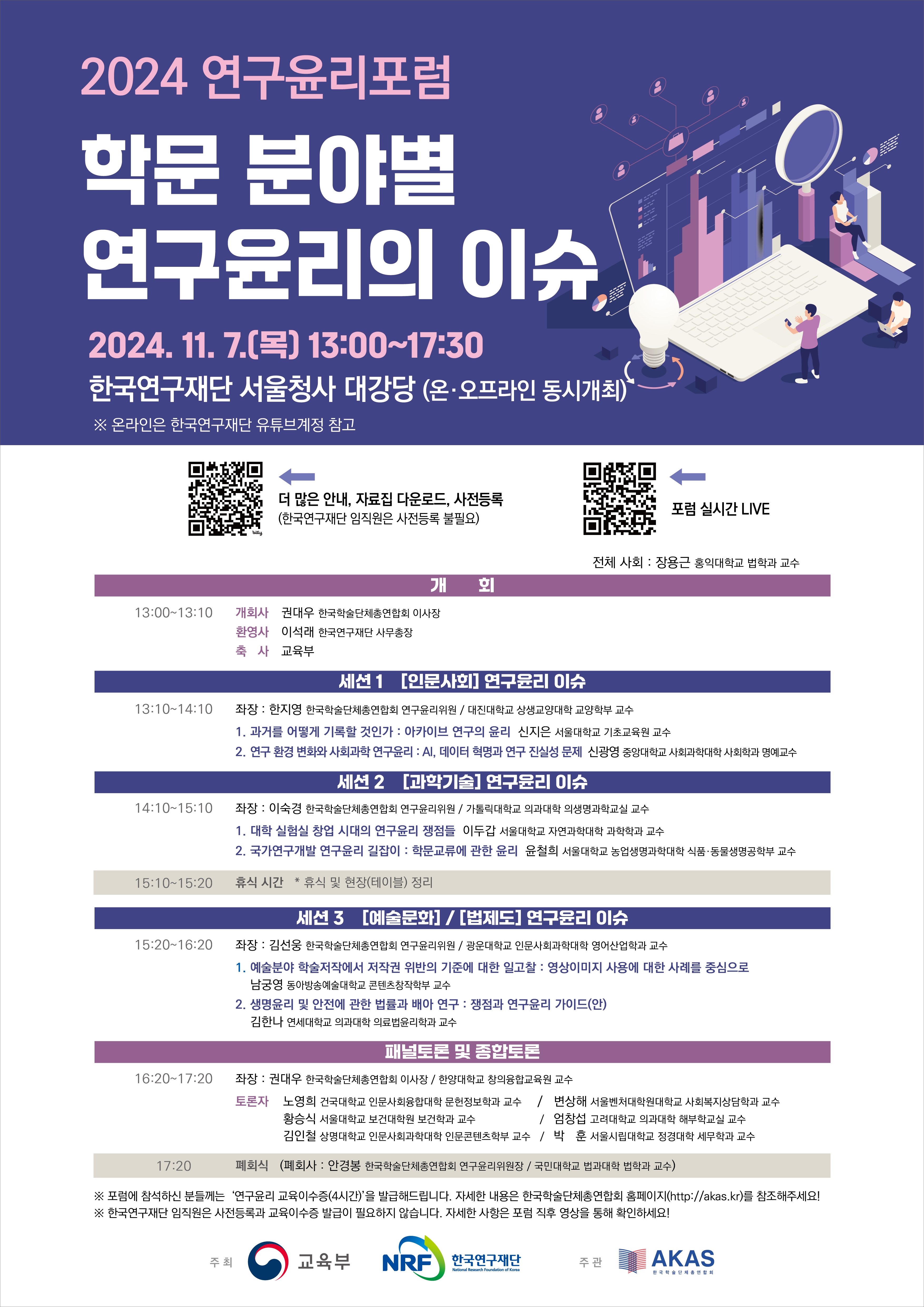 - 행사명: 2024년 연구윤리포럼 – 학문 분야별 연구윤리의 이슈