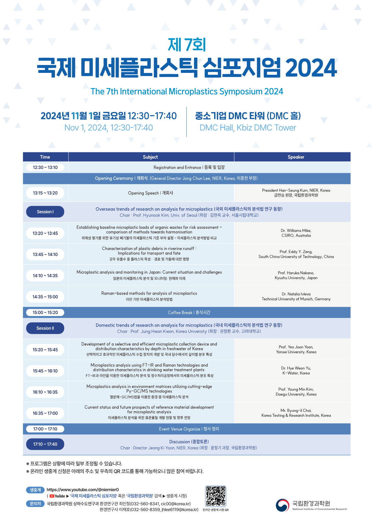 2. 온라인: 유튜브에서 제7회 국제 미세플라스틱 심포지엄 검색 또는 아래의 포스터 QR코드