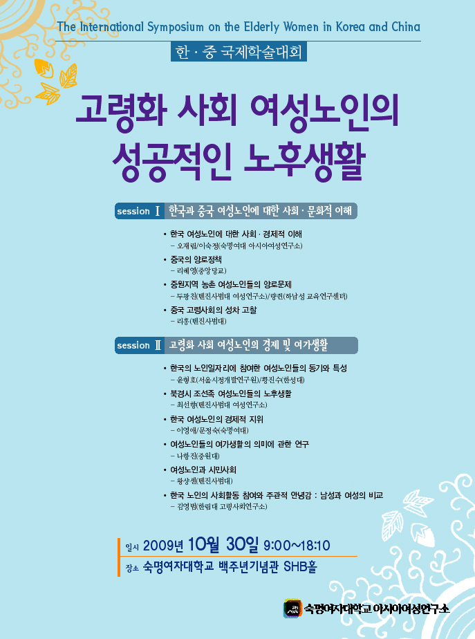 [2009 한중 국제학술대회] 고령화사회 여성노인의 성공적인 노후생활