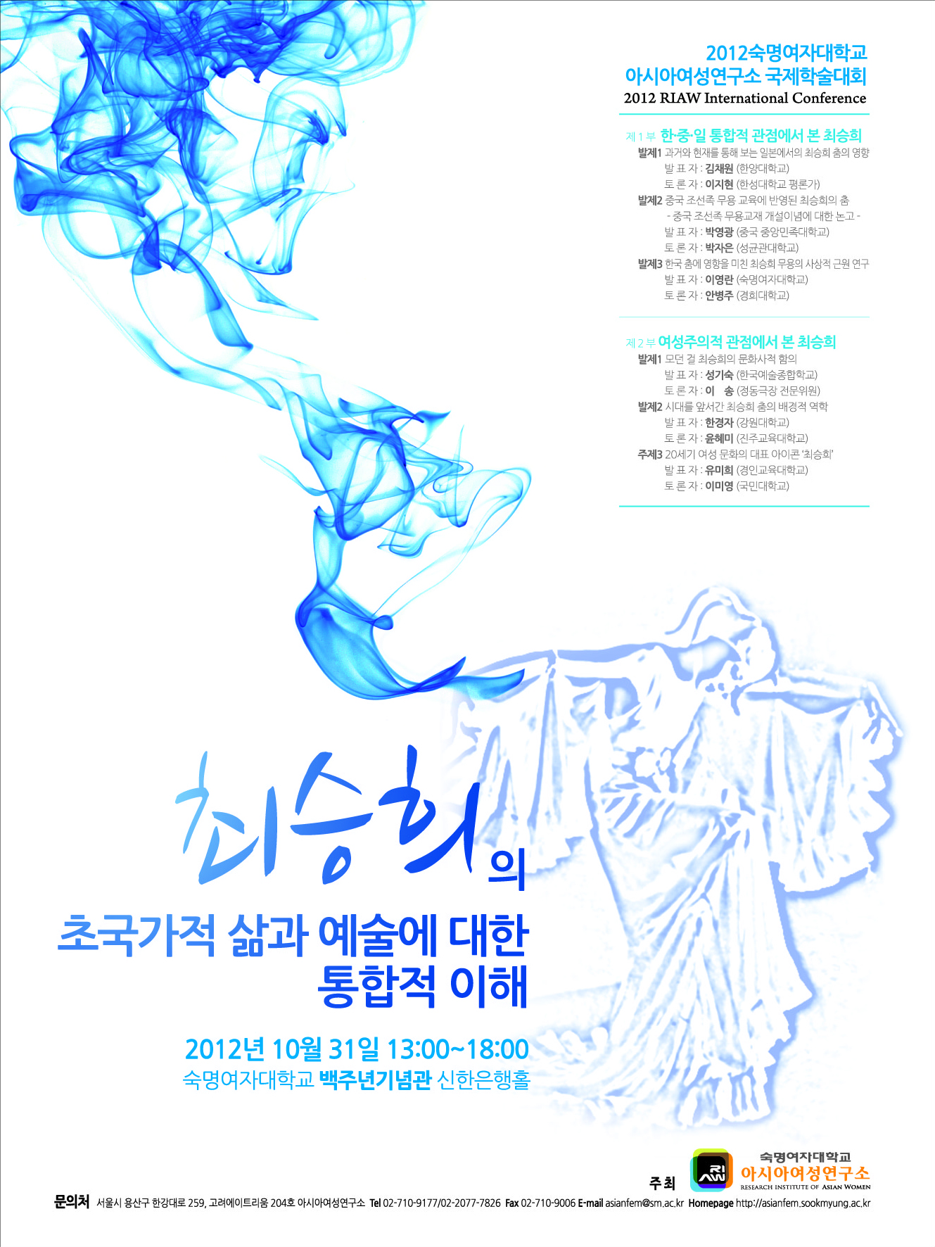 저희 아시아여성연구소는 오는 2012년 10월 31일 수요일 오후 1시~6시까지