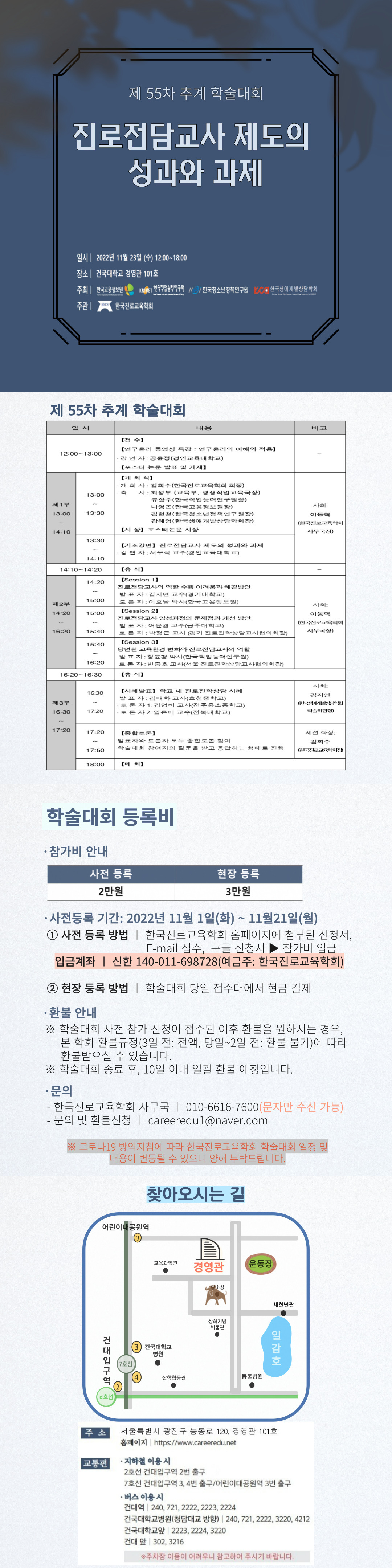 - 한국진로교육학회 사무국(careeredu1@naver.com) / 전화문의는 받지 않습니다. (문자 수신 전용 전화 010-6616-7600)