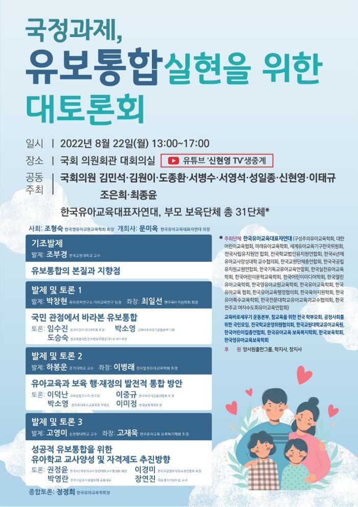 국정과제 유보통합 실현을 위한 대토론회 개최를 안내드립니다.