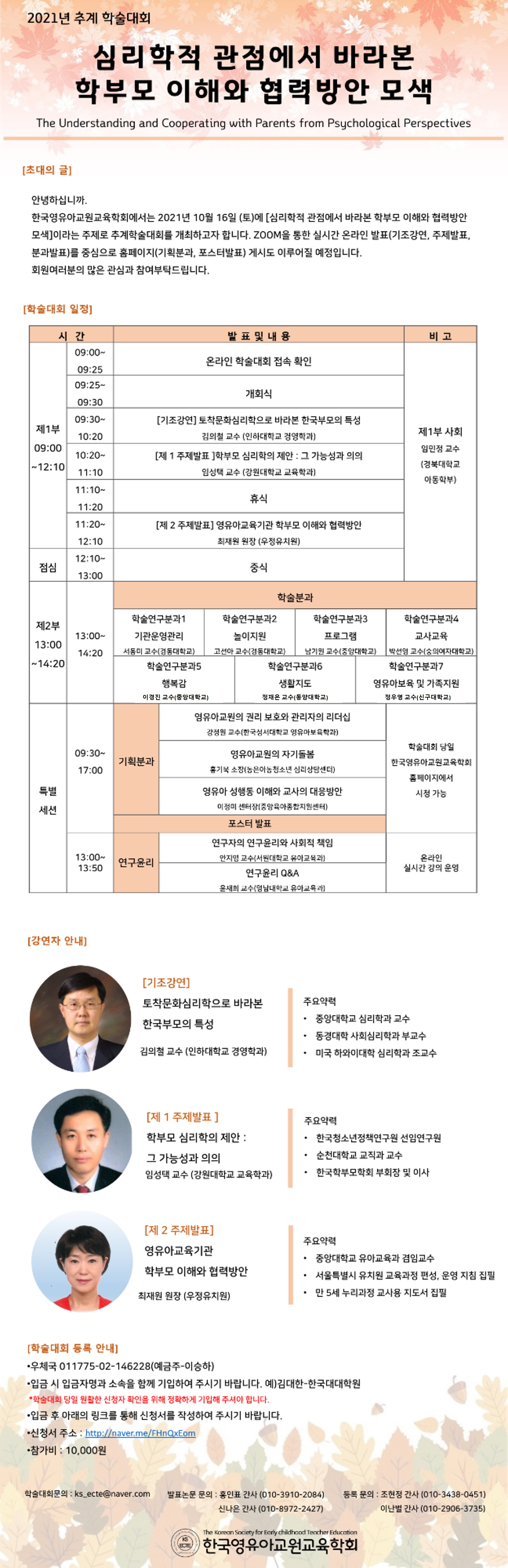 [2021년 추계학술대회 일정 안내] 심리학적 관점에서 바라본 학부모 이해와 협력방안 모색