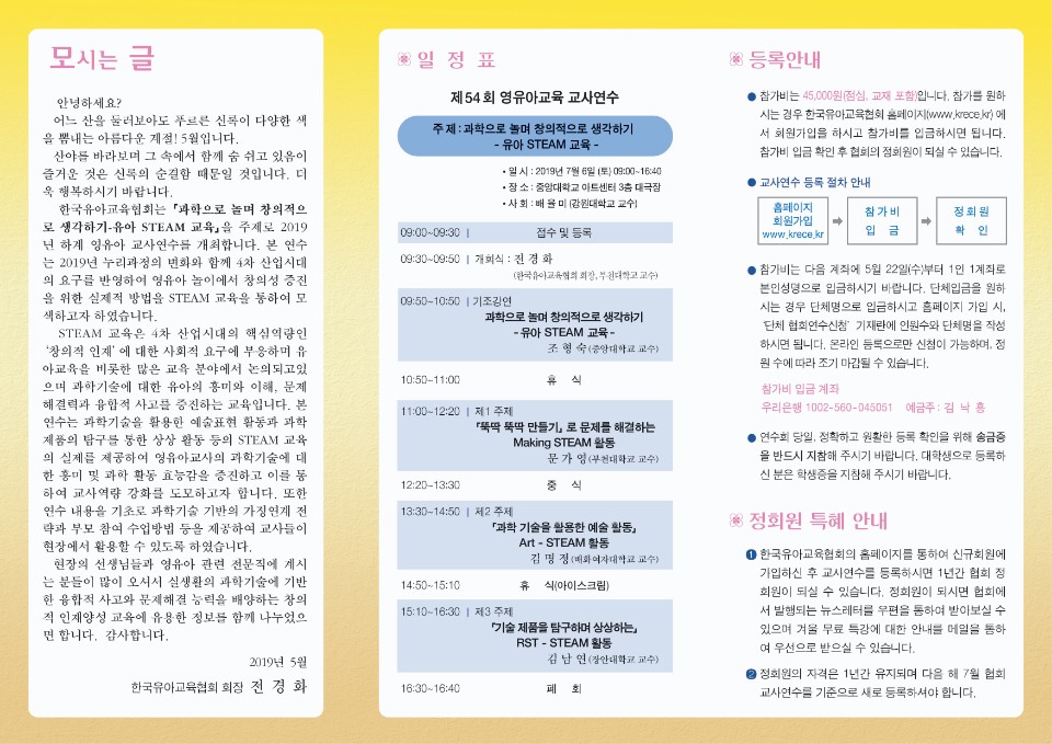 등록방법: 한국유아교육협회 홈페이지(www.krece.kr) 회원가입 후 참가비 입금