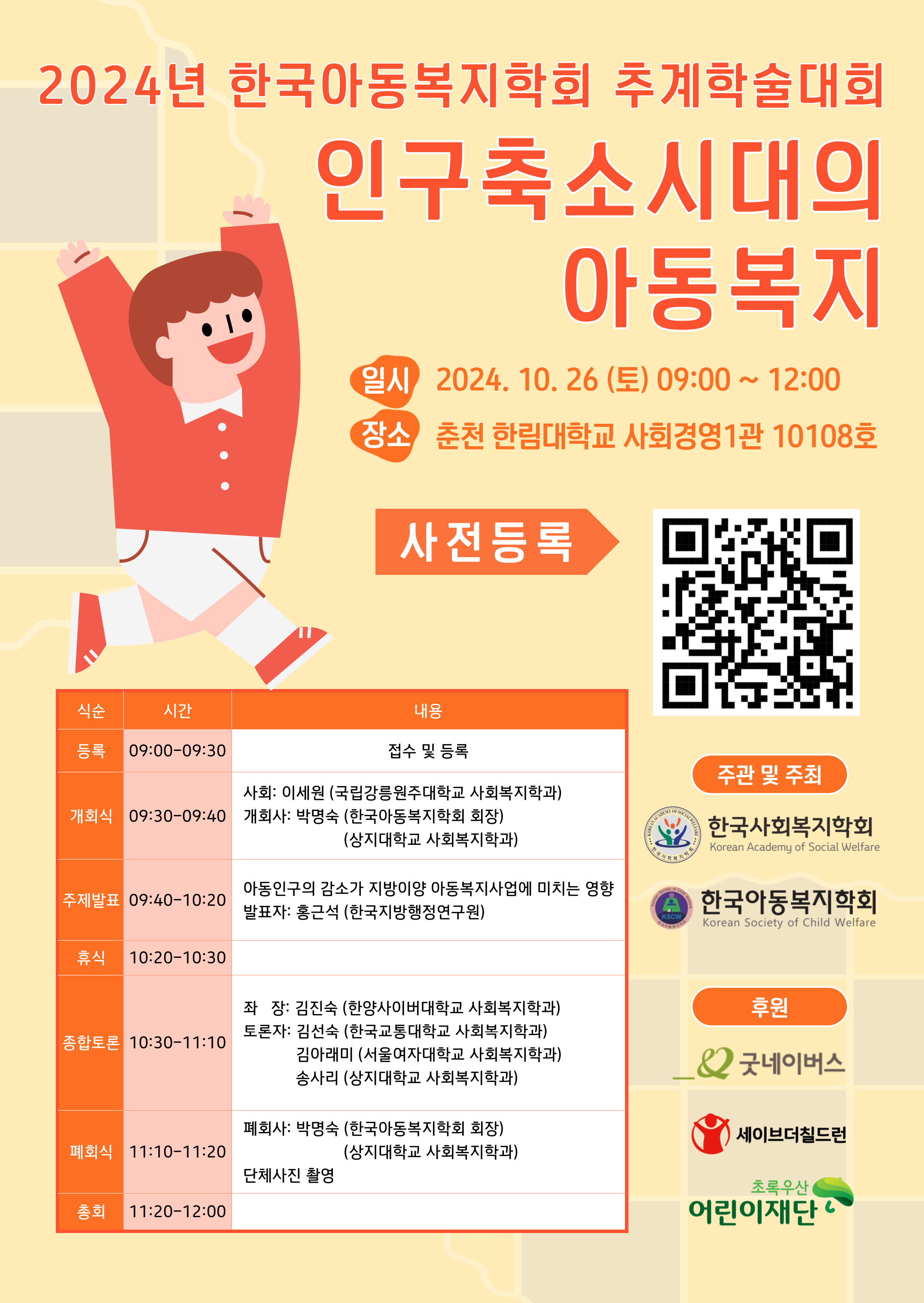 [한국아동복지학회] 2024년 공동학술대회 세션운영 「인구축소시대의 아동복지」