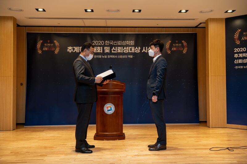 이러한 선정 과정을 거쳐 지난 11월 20일 제 8회 한국신뢰성 대상 시상식이 한밭대학교에서 진행되었습니다. 2020년 한국신뢰성대상 수상자로는 정부공공 부문 기관으로 한국전자기술시험원, 제조 부문 현대모비스(주) 박정국 대표이사, 서비스업 부문 (주)한국야쿠르트 김병진 대표이사, 중견중소 부문 네모시스(주) 김종운 대표이사가 선정되었습니다. 이번 수상을 통해 해당 조직은 물론 우리나라의 신뢰성 역량이 더욱 발전하고 성장하는 계기가 되기를 바랍니다.