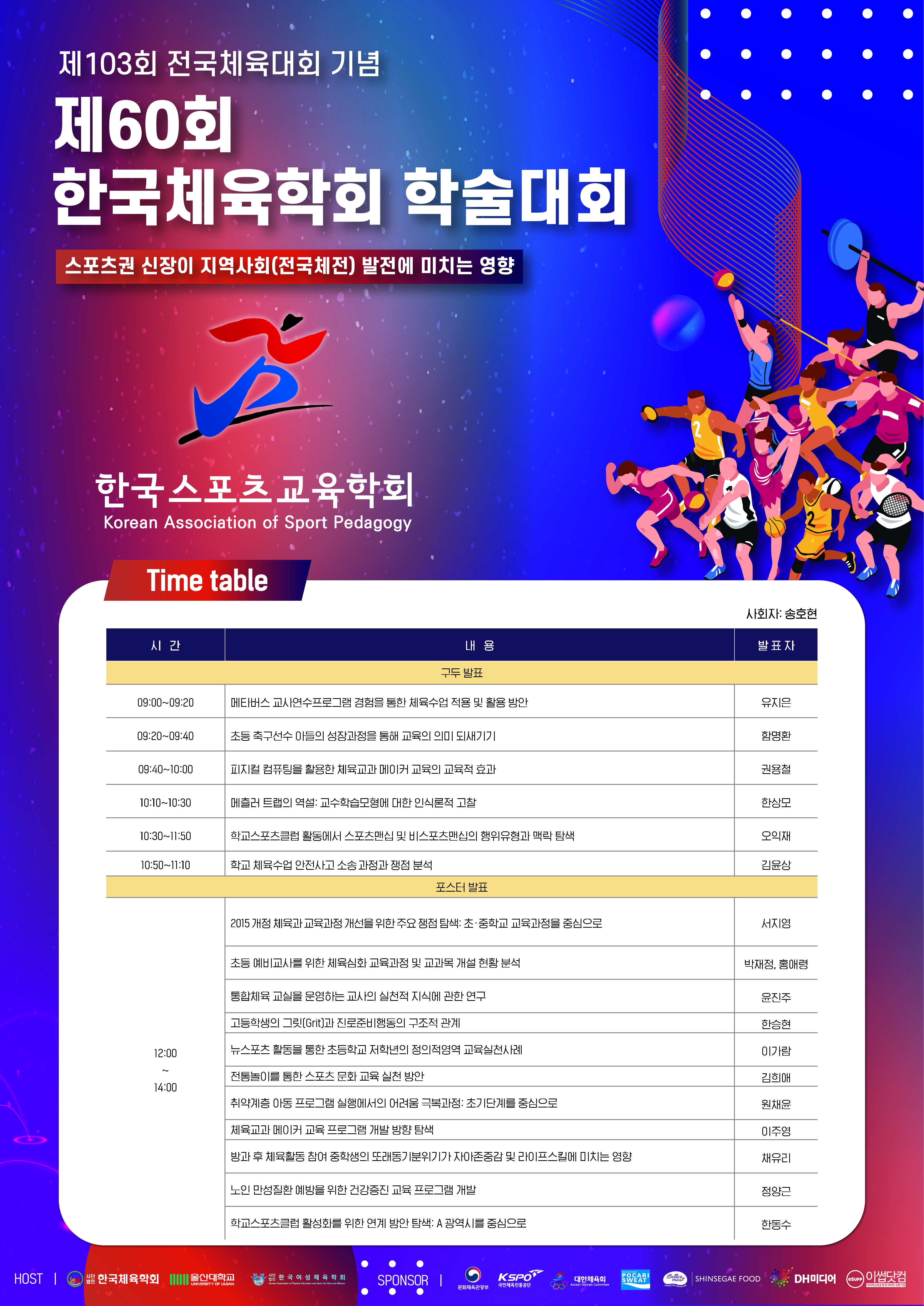 10월 7일(금) ~ 8일(토) 울산대학교 해송홀(울산광역시 남구 대학로 93)에서 제 103회 전국체육대회 기념 제 60회 한국체육학회 학술대회가 개최됩니다.