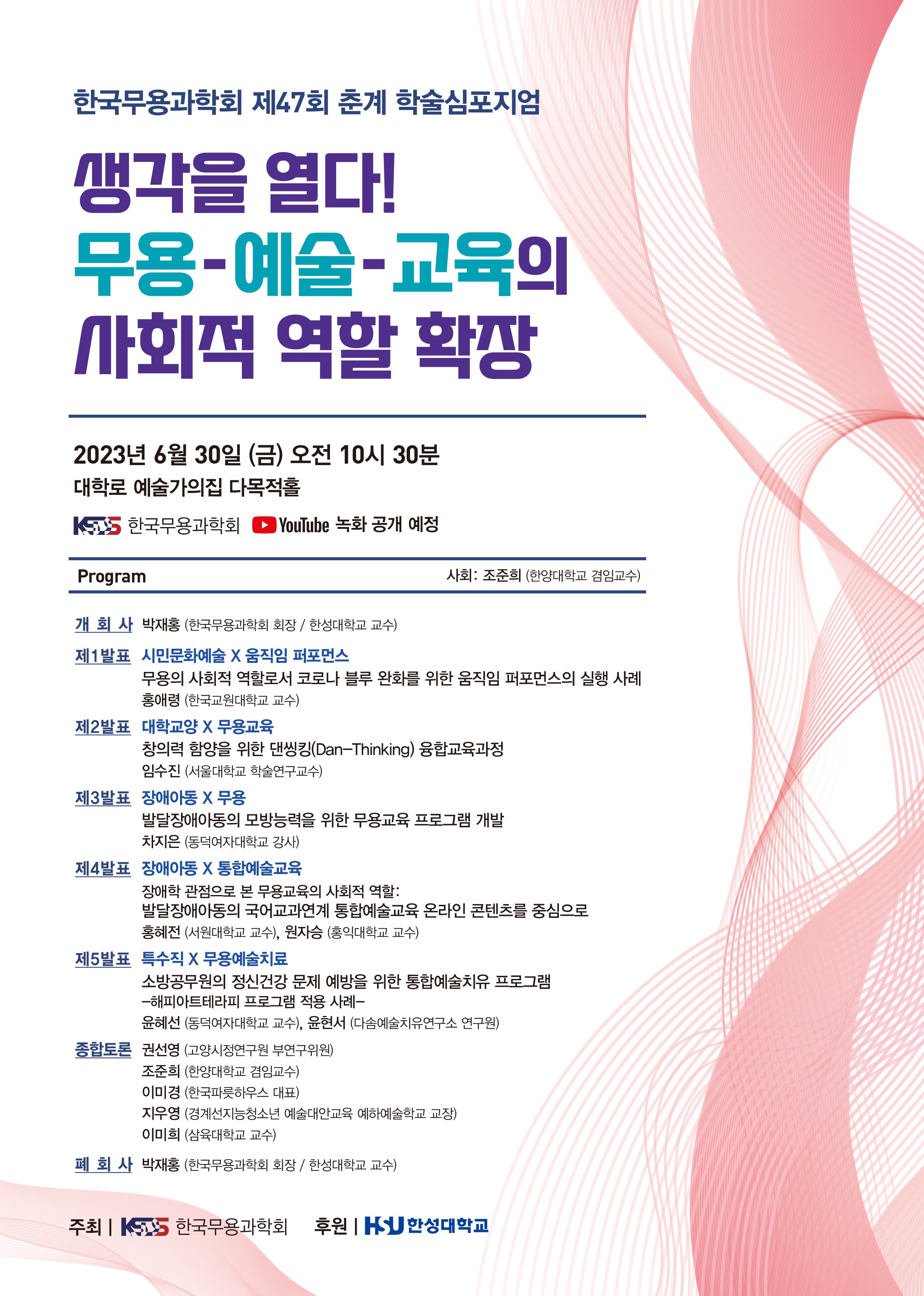 현장 개최 녹화영상은 2023년 7월 중, 학회 공식유튜브에 공개할 예정입니다.