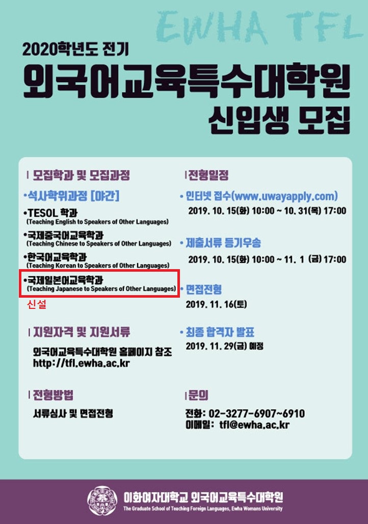 2020년도 1학기부터 국제일본어교육학과(이화여대 외국어교육특수대학원) 신입생을 모집합니다.