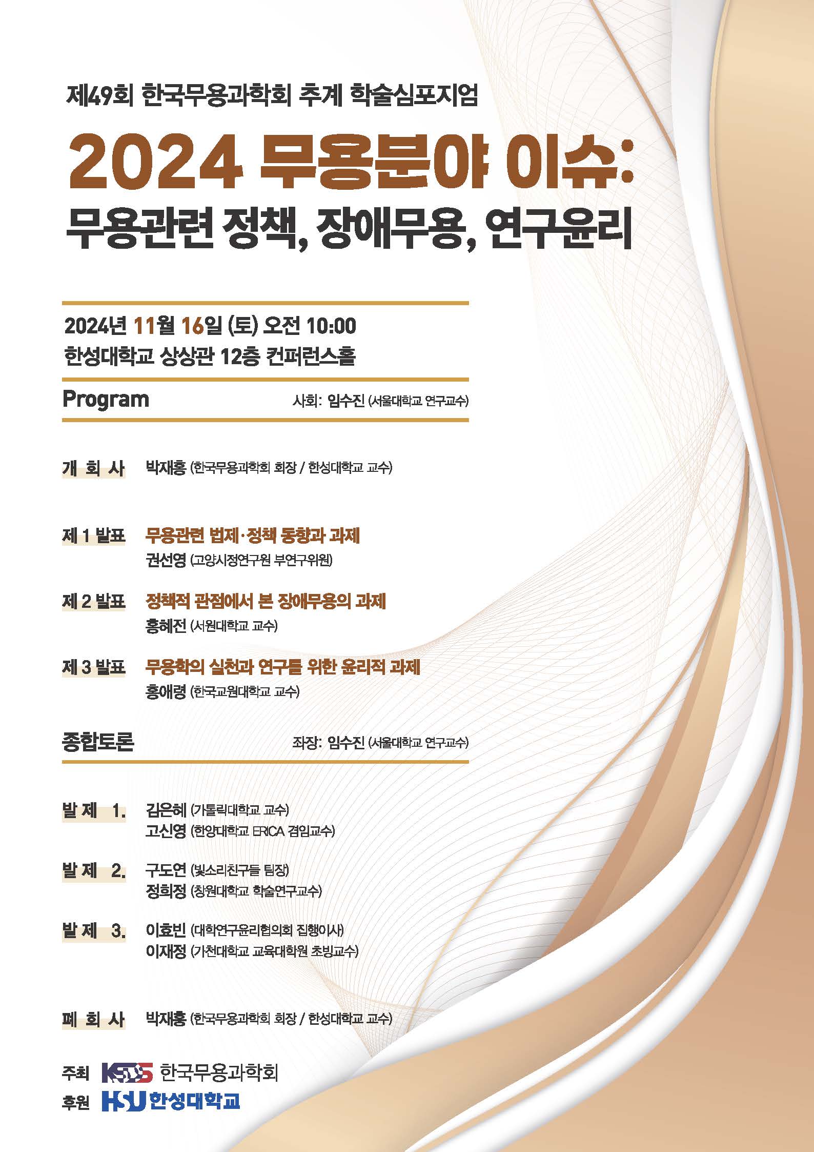 한국무용과학회 제49회 추계학술심포지엄을 현장 개최합니다.
