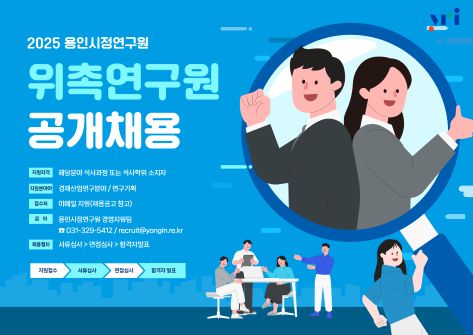 용인시정연구원에서는 용인특례시민 삶의 질 향상과 지역발전을 이끌 참신하고 유능한 직원을 아래와 같이 공개 모집중에 있습니다.