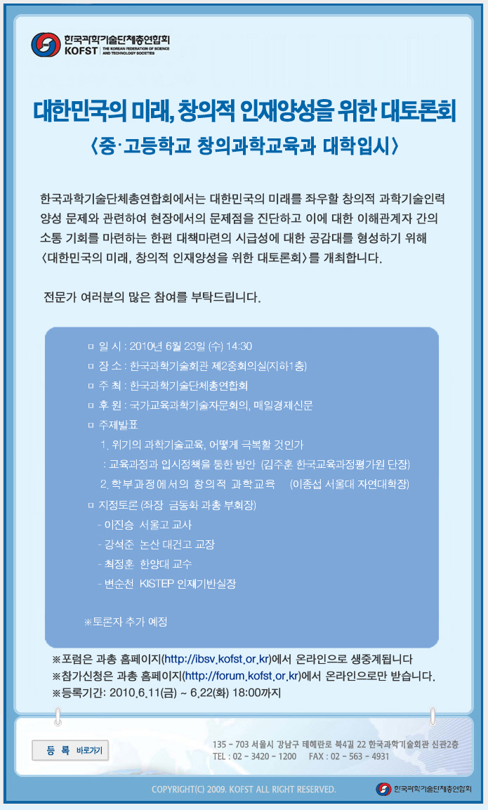 [과총]대한민국의 미래, 창의적 인재양성을 위한 대 토론회