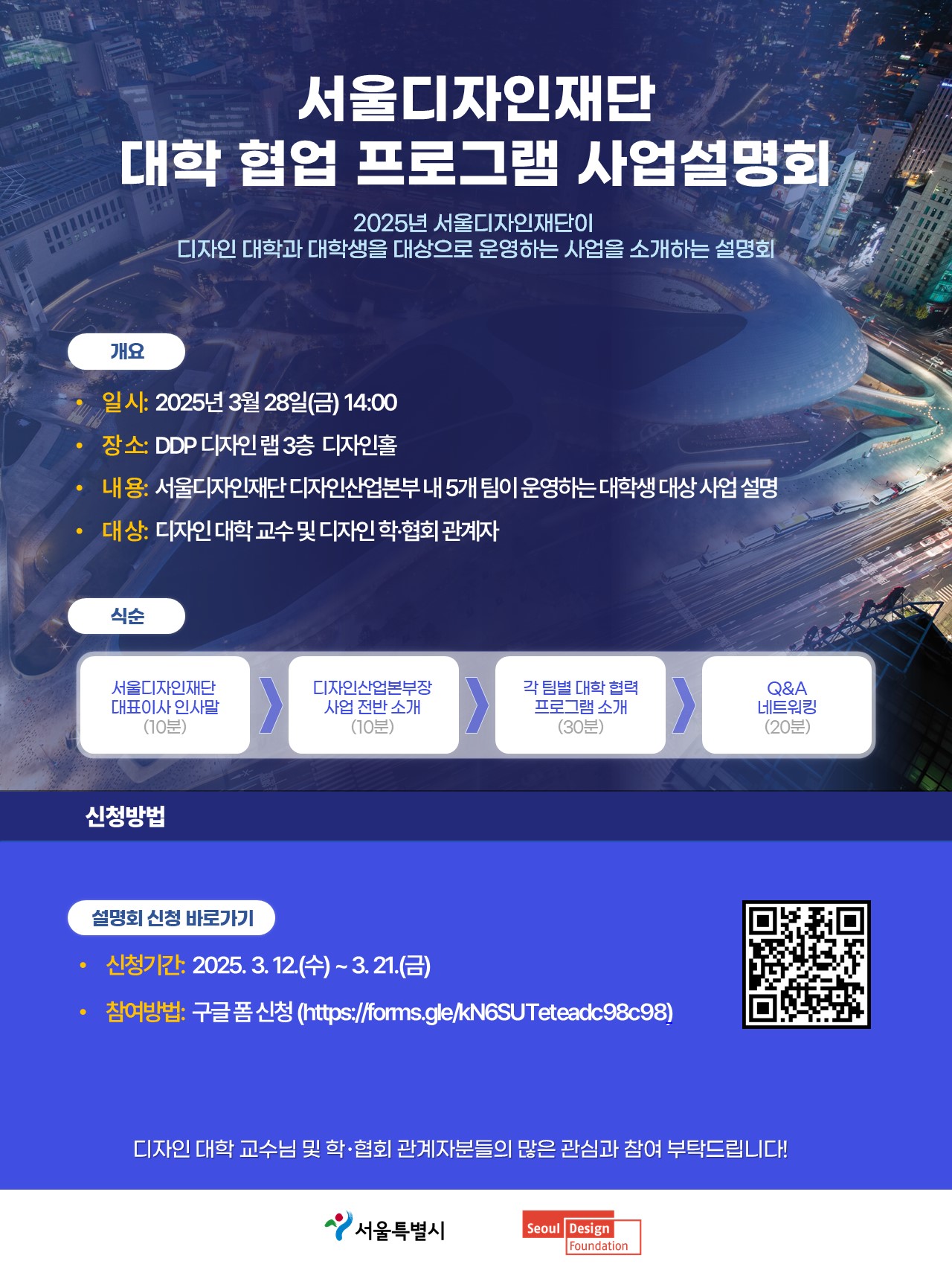 [서울디자인재단] 디자인산업본부 「대학 협업 프로그램 사업설명회」개최 안내