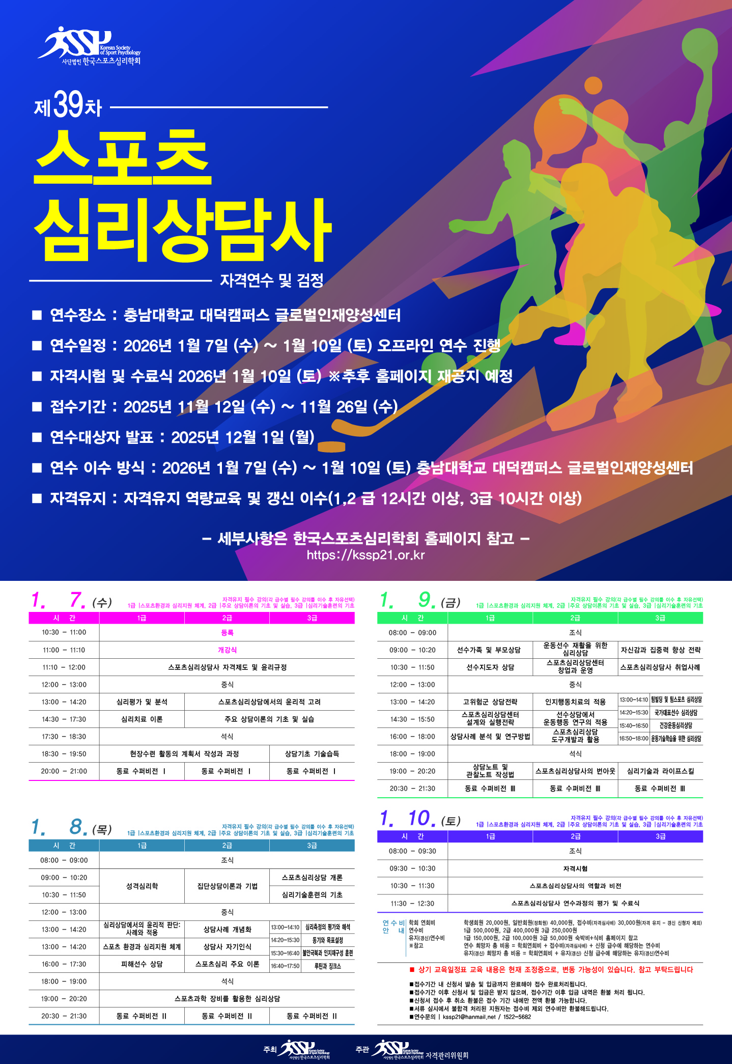 ※ 첨부해드린 자격연수 포스터-강의 프로그램은 현재 조정중에 있어, 요일/시간 변동될 가능성이 큽니다. 참고 부탁드립니다.