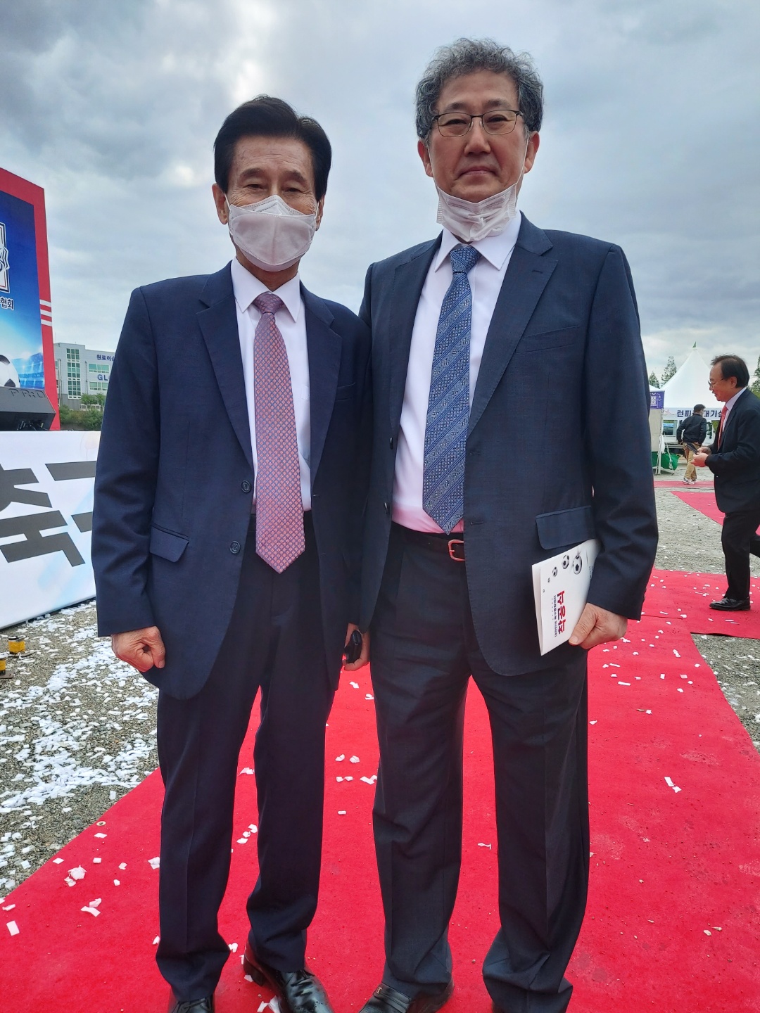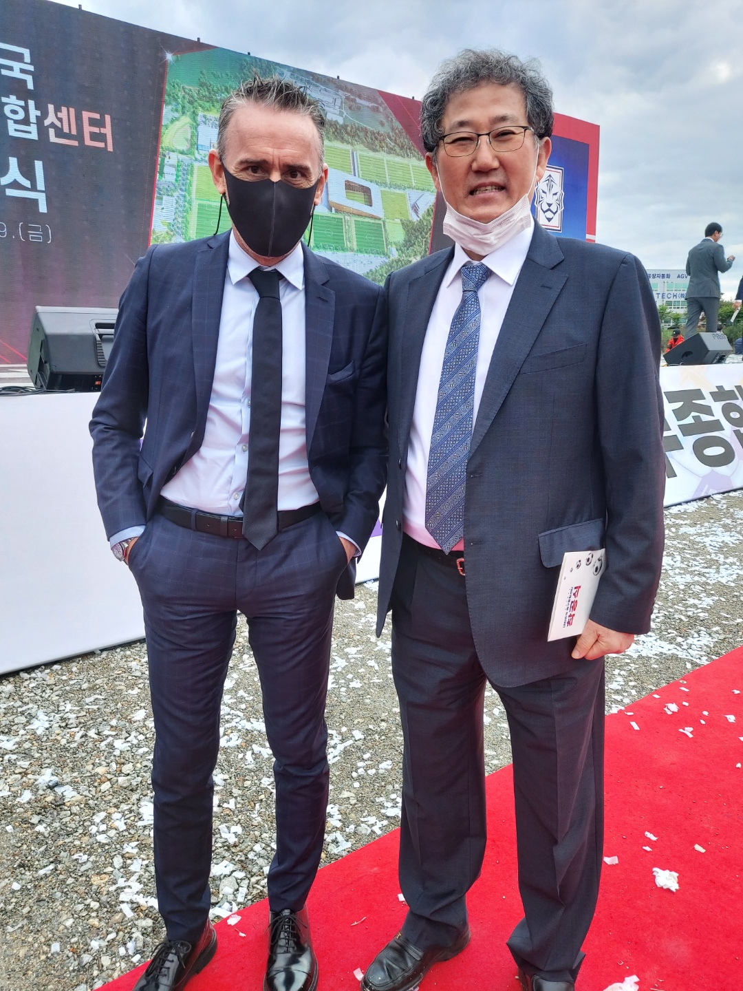3. (좌) 김종윤(대한축구협회 대회운영실장), (우) 이용수(대한축구협회 부회장, 전 기술위원장) 교수와 함께