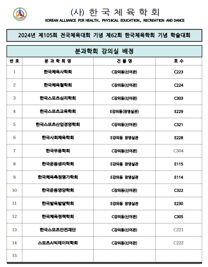 2024년 제105회 전국체육대회 기념 제62회 한국체육학회 학술대회와 관련하여 안내드립니다.