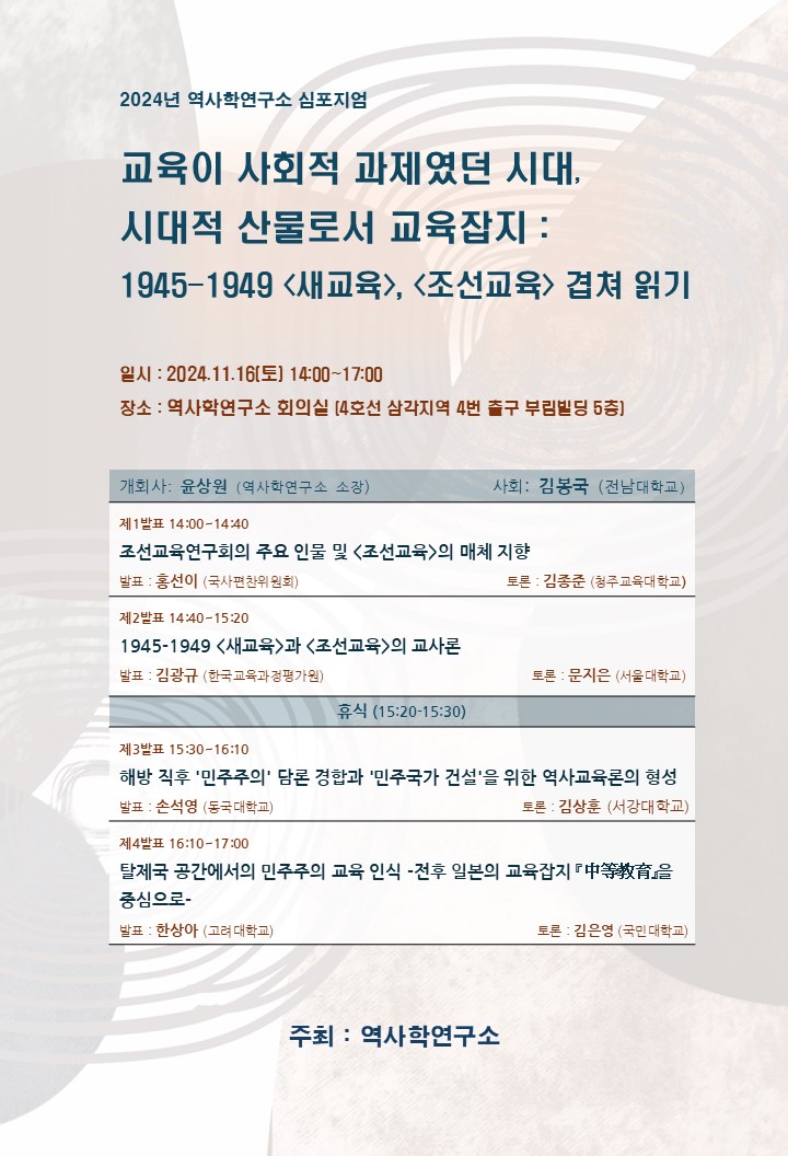 역사학연구소에서는 2024년 심포지엄를 개최합니다.