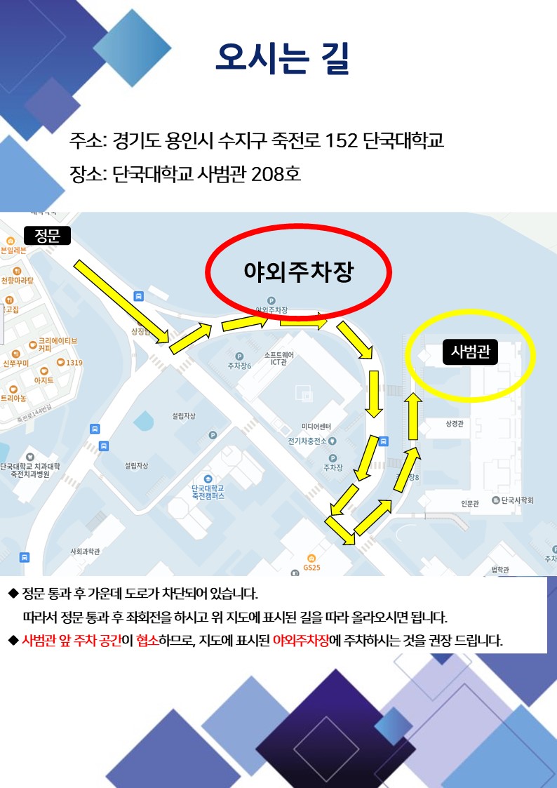- 장소: 단국대학교 죽전캠퍼스 사범관 208호