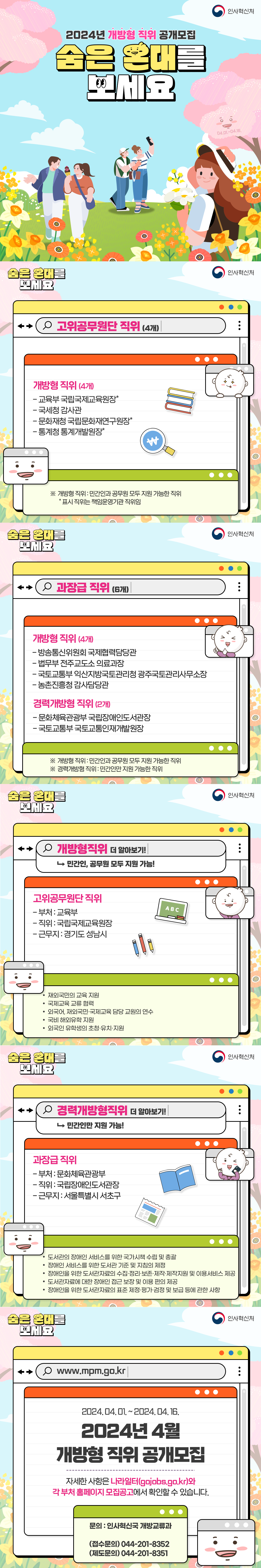 [인사혁신처] 2024년 4월 개방형 직위 공개모집 안내
