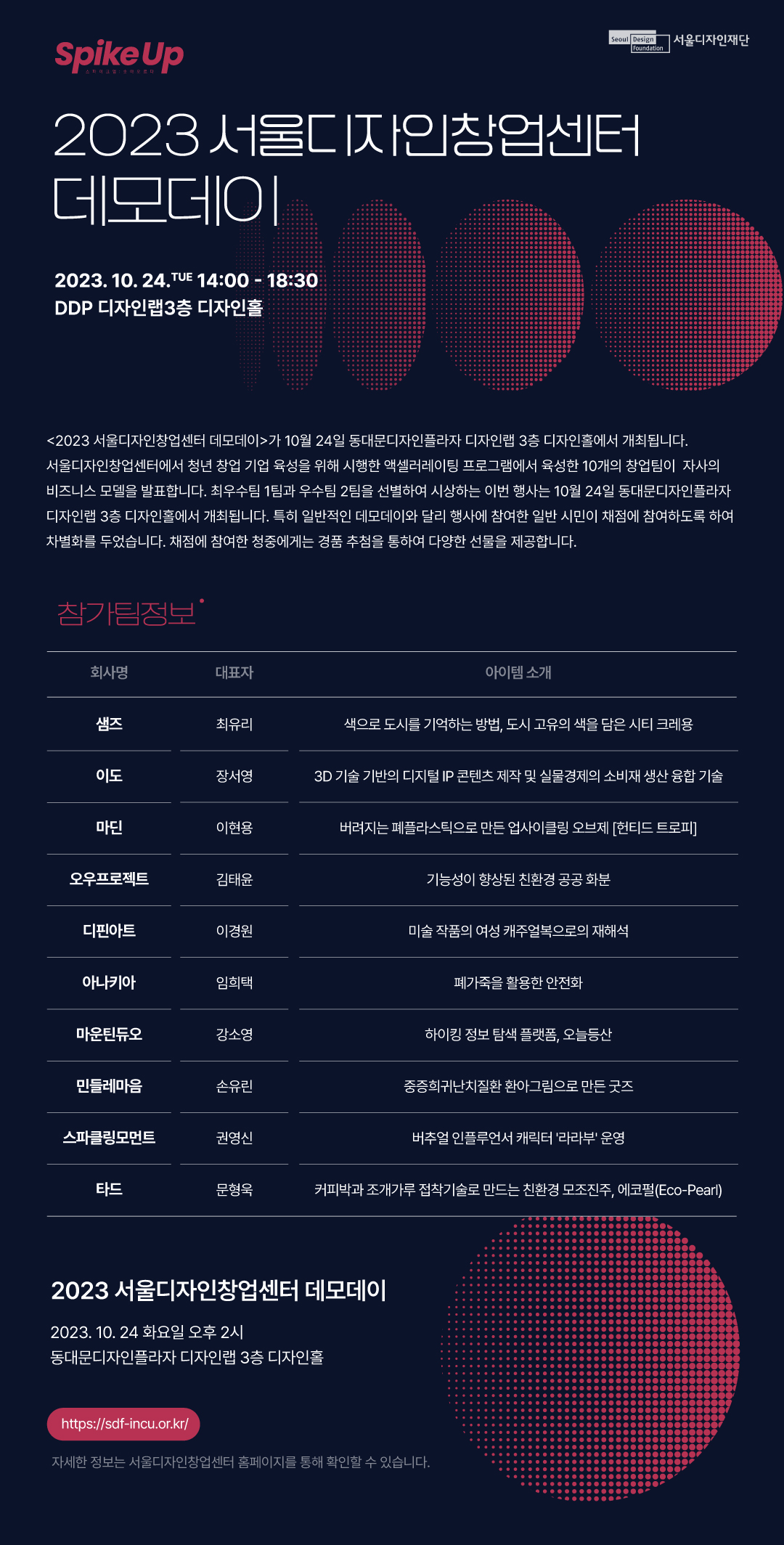 1) 행 사 명: 2023 서울디자인창업센터 데모데이